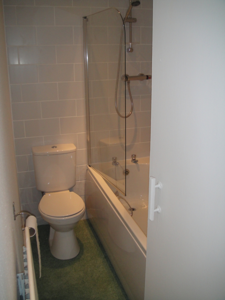 Bath Room 10ft by 6ft fully tiled shower and bath area. Shower from combi boiler with good pressure.